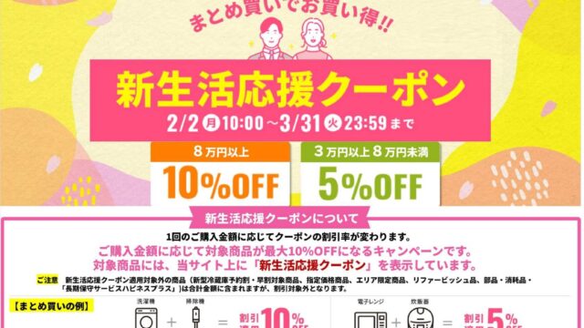 日立の家電品オンラインストア☆まとめ買いでお買い得!新生活応援クーポンほか、お得な企画が満載